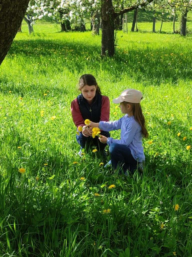 Am 24.4.026 trafen sich die Kinder auf der Streuobstwiese in Kiefenholz. Dort drehte sich alles um Wiesenkräuter. Erst wurde fleißig gesucht danach widmete sich die Gruppe speziell dem Löwenzahn.